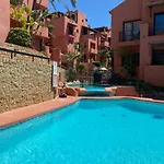 Quest'appartamento di 135 m², Don Carlos Marbella Beach, è situato a una distanza di 1 km dall'Amazonia e offre una piscina. Quest'appartamento offre una terrazza con viste sul giardino.
